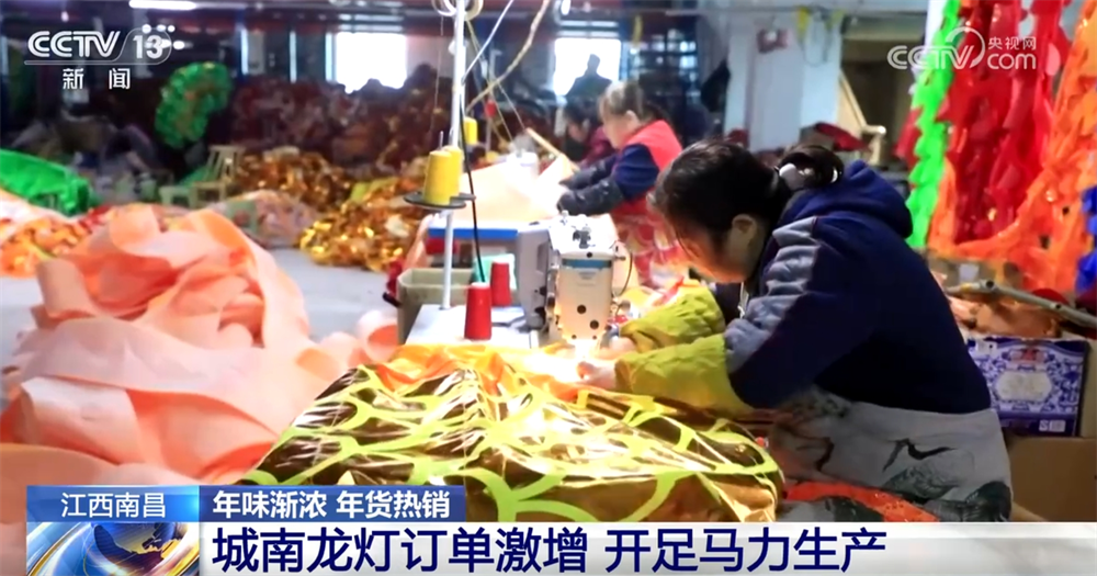 江西南昌的城南龍燈有著700多年的制作歷史。春節(jié)前,當(dāng)?shù)爻悄淆垷羯a(chǎn)基地訂單激增。數(shù)百平方米的廠房內(nèi),設(shè)置了龍頭、龍身、龍衣、龍尾等制作區(qū),50多名工人都在有條不紊地完成自己的工序。在發(fā)貨區(qū),師傅們忙著裝貨打包,趕在年前給來自全國和海外的訂單發(fā)貨。