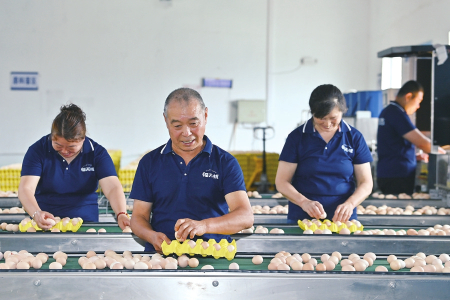 工作人員集中整理、包裝合格蛋品。