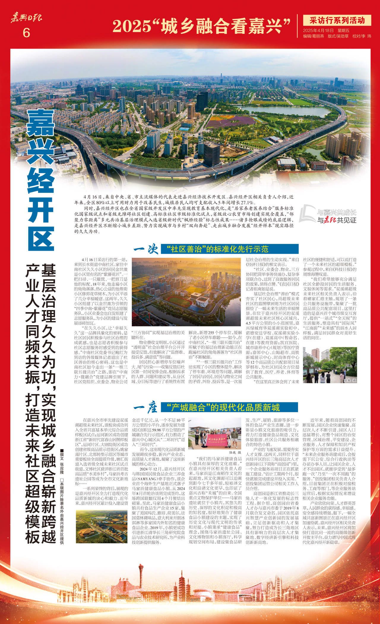 同時(shí),嘉興經(jīng)開區(qū)也在全省國(guó)家級(jí)開發(fā)區(qū)中率先實(shí)現(xiàn)教育基本現(xiàn)代化,是“居家養(yǎng)老醫(yī)養(yǎng)結(jié)合”服務(wù)標(biāo)準(zhǔn)化國(guó)家級(jí)試點(diǎn)和省級(jí)無(wú)障礙社區(qū)創(chuàng)建、高標(biāo)準(zhǔn)社區(qū)市級(jí)標(biāo)準(zhǔn)化試點(diǎn),省級(jí)放心農(nóng)貿(mào)市場(chǎng)創(chuàng)建實(shí)現(xiàn)全覆蓋,“鄰聚力零距離”多元共治基層治理模式入選省級(jí)新時(shí)代“楓橋經(jīng)驗(yàn)”標(biāo)志性成果……諸多搶眼成績(jī)的底層邏輯,是嘉興經(jīng)開區(qū)不斷縮小城鄉(xiāng)差距、努力實(shí)現(xiàn)城市與鄉(xiāng)村“雙向奔赴”、走出城鄉(xiāng)融合發(fā)展“經(jīng)開樣本”現(xiàn)實(shí)路徑的久久為功。
