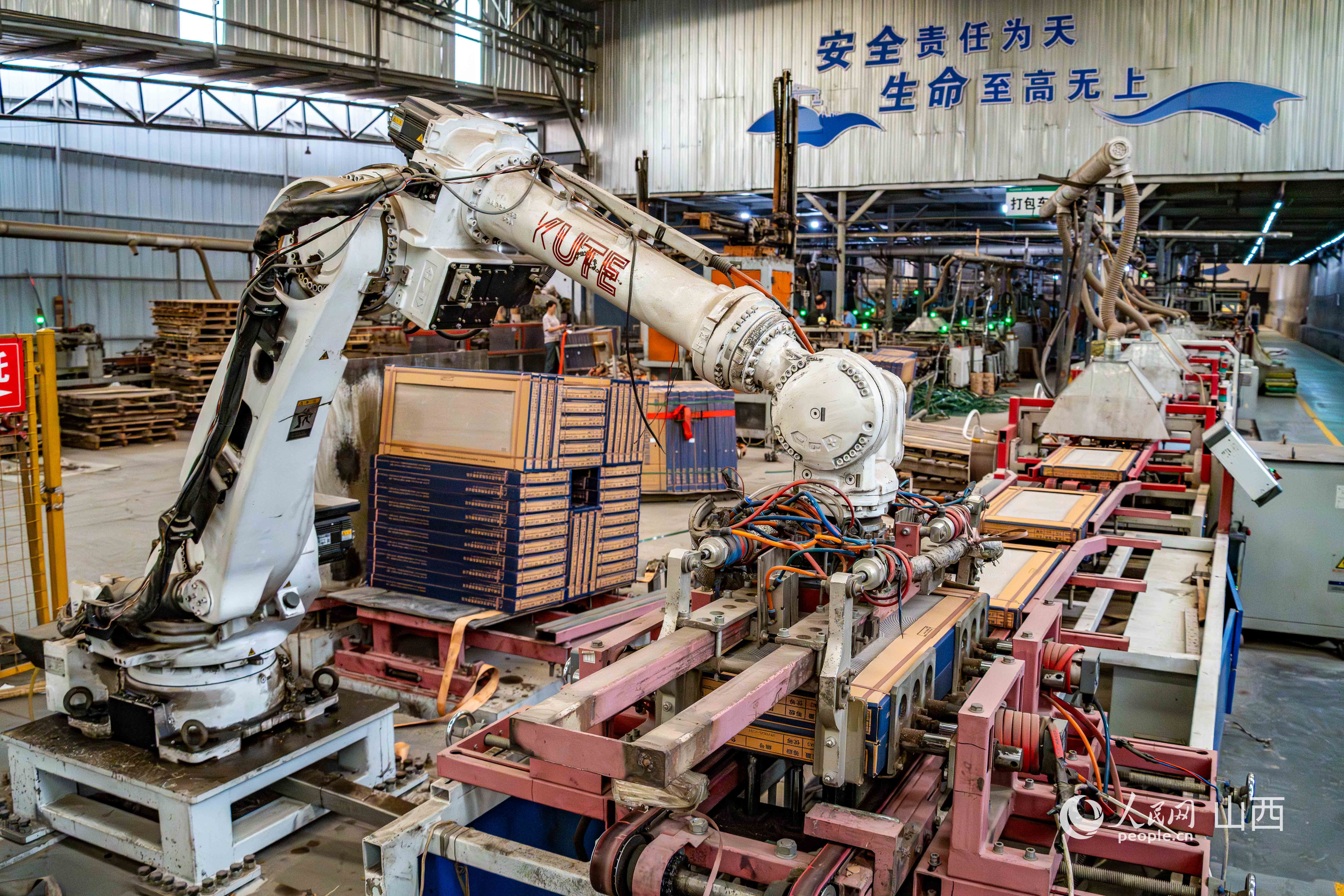 次營(yíng)鎮(zhèn)賽村蠶桑產(chǎn)業(yè)示范園。人民網(wǎng) 馬夢(mèng)迪攝 作為“北方蠶鄉(xiāng)”,陽(yáng)城蠶桑規(guī)模獨(dú)占鰲頭——養(yǎng)蠶規(guī)模和蠶繭產(chǎn)量分別占山西90%以上、華北地區(qū)80%以上。今年上半年,全縣養(yǎng)蠶1.45萬(wàn)張、產(chǎn)繭71.4萬(wàn)公斤、收入4784萬(wàn)元,預(yù)計(jì)全年養(yǎng)蠶張數(shù)3萬(wàn)張以上、產(chǎn)繭140萬(wàn)公斤以上。近年來(lái),陽(yáng)城更以創(chuàng)新打破傳統(tǒng)蠶桑飼育模式,聯(lián)合山西農(nóng)業(yè)大學(xué)成功開(kāi)展小蠶人工飼料育,在3個(gè)鄉(xiāng)鎮(zhèn)推廣智能養(yǎng)蠶新模式,蠶繭平均單產(chǎn)突破50公斤。 在賽村,“黨支部+公司+基地+合作社+農(nóng)戶(hù)”模式,不僅讓1200畝桑園、140棟高標(biāo)準(zhǔn)養(yǎng)蠶大棚高效運(yùn)轉(zhuǎn),在全縣更是催生出絲綿被加工、桑葚飲品、蠶桑研學(xué)等新業(yè)態(tài),形成“繭—絲—茶—果—藥—飲—被—服—游”九位一體的生態(tài)循環(huán)產(chǎn)業(yè)鏈。 農(nóng)業(yè)領(lǐng)域的蠶桑產(chǎn)業(yè)煥發(fā)新生,工業(yè)領(lǐng)域的傳統(tǒng)優(yōu)勢(shì)產(chǎn)業(yè)陶瓷也在創(chuàng)新驅(qū)動(dòng)下邁向高端。 作為中國(guó)北方最大陶瓷產(chǎn)區(qū)、“中國(guó)建筑琉璃之鄉(xiāng)”,陽(yáng)城現(xiàn)有23家建筑陶瓷企業(yè)、26條中高檔墻地磚生產(chǎn)線(xiàn),今年以來(lái)緊抓房地產(chǎn)振興機(jī)遇,憑借產(chǎn)品研發(fā)與技術(shù)革新拉動(dòng)近2萬(wàn)人就業(yè)。 在華冠陶瓷有限公司的生產(chǎn)車(chē)間,機(jī)械臂精準(zhǔn)搬運(yùn)打包好的墻地磚,數(shù)字化生產(chǎn)線(xiàn)實(shí)現(xiàn)從原料到燒制的全流程智能控制,能耗顯著降低;企業(yè)成立的科創(chuàng)中心更緊盯市場(chǎng)需求,研發(fā)的400x800mm、600x1200mm全瓷中板等產(chǎn)品達(dá)國(guó)際品質(zhì)。圍繞“二產(chǎn)抓陶瓷”戰(zhàn)略,陽(yáng)城打造陶瓷琉璃小鎮(zhèn),推動(dòng)陽(yáng)城陶瓷從傳統(tǒng)制造邁向品牌化、高端化,區(qū)域影響力持續(xù)提升。