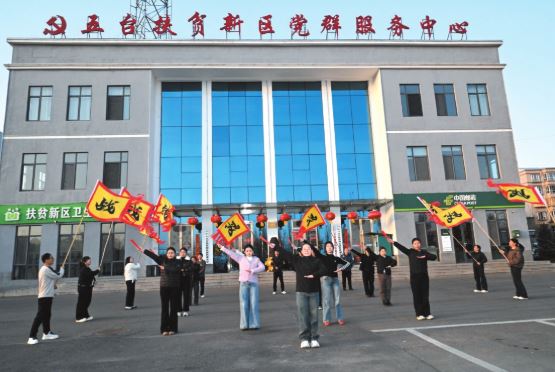 正月初八,走進(jìn)位于五臺(tái)縣東雷鄉(xiāng)的扶貧新區(qū)社區(qū),夕陽(yáng)余暉灑滿這片占地26萬(wàn)平方米的集中安置區(qū)。13棟六層居民樓內(nèi)年味濃郁,街道上紅燈籠高懸,家家戶戶門(mén)前張貼著紅彤彤的對(duì)聯(lián)。辦公樓前的廣場(chǎng)上鼓樂(lè)悠揚(yáng)、彩旗飄飄,由社區(qū)牽頭、居民自發(fā)參與的秧歌隊(duì)正加緊排練,準(zhǔn)備參加該縣元宵節(jié)文藝匯演。圍觀居民的歡聲笑語(yǔ)與參與者的歡快舞姿,勾勒出一幅溫馨熱鬧的新春畫(huà)卷。