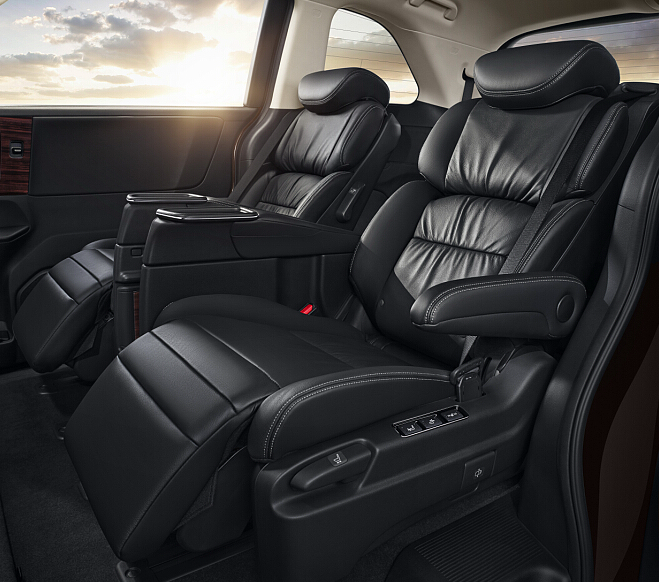 全新一代艾力紳第二排座椅堪比飛機(jī)頭等艙,可橫向、縱向方位調(diào)節(jié),實(shí)現(xiàn)多樣空間變化,而且還可電動(dòng)調(diào)節(jié)椅背和腿托,手動(dòng)調(diào)節(jié)肩部角度,從容享受舒適坐姿。且具備座椅加熱功能,實(shí)現(xiàn)了同級(jí)別最優(yōu)的乘坐舒適性,隱藏在二排的扶手型小桌板商務(wù)范十足,全系標(biāo)配的電動(dòng)雙天窗大幅提升了乘坐者的舒適感。