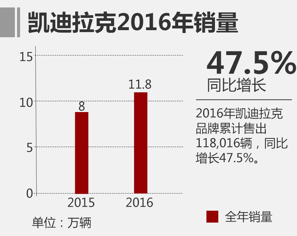 作為中國(guó)市場(chǎng)最早的美系豪華品牌的代表,通用旗下豪華品牌凱迪拉克終于在2016年11月中旬完成“十萬(wàn)”銷量大關(guān),2016年全年累計(jì)售出118,016輛,同比大增47.5%,成為第二梯隊(duì)中銷量增長(zhǎng)第三快的豪華品牌。