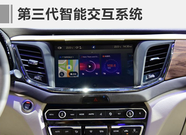 內部配置方面,傳祺GS8將搭載品牌最新的第三代智能交互系統。這套系統配備了全新的智能設備,其中10.1英寸觸摸液晶顯示屏是主要硬件部分。在軟件應用中,包括全新的組合儀表盤、智能語音控制、多媒體系統以及應用等一系列人機交互內容,這些都能夠與手機端的APP相互連通。