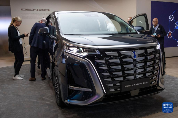 9月4日,在德國慕尼黑國際車展媒體預(yù)展上,人們在比亞迪品牌發(fā)布會現(xiàn)場體驗騰勢D9汽車。