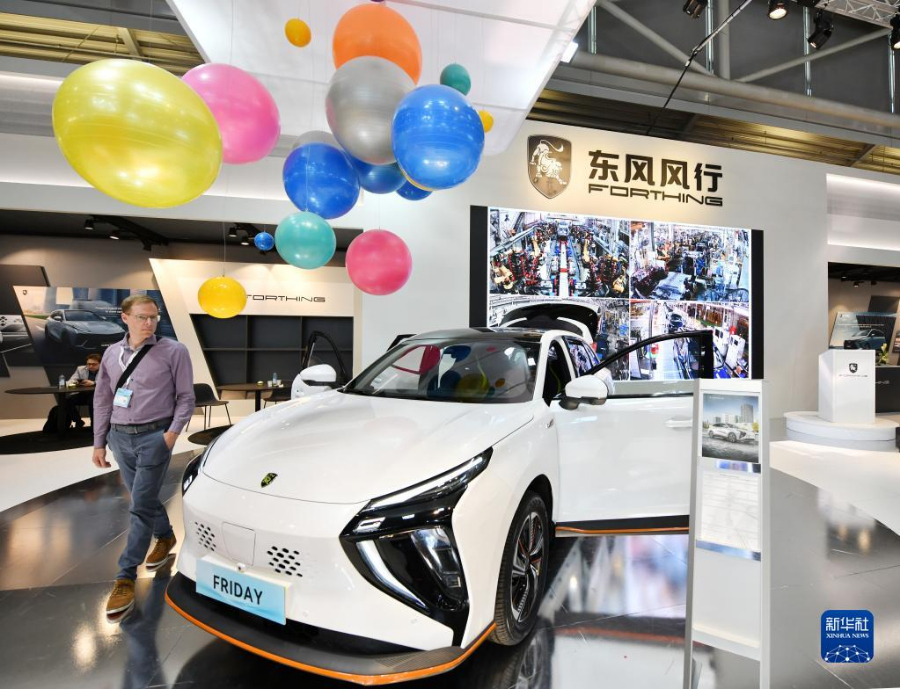 9月6日,一名男子在德國慕尼黑國際車展的東風(fēng)風(fēng)行展區(qū)參觀。