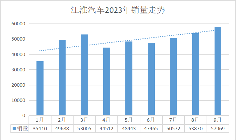 江淮汽車(chē)2023年月銷(xiāo)量走勢(shì)
