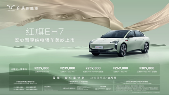 隨著環(huán)保意識的提升和新能源技術(shù)的飛速發(fā)展,新能源汽車成為全球汽車產(chǎn)業(yè)發(fā)展的新方向。紅旗新能源緊隨時(shí)代潮流,于3月20日在深圳舉辦“安心駕享·紅旗EH7上市發(fā)布會”,推出了其在新能源領(lǐng)域的里程碑產(chǎn)品——紅旗EH7,全國統(tǒng)一零售價(jià)為22.98萬-30.98萬元。這款車的推出,不僅增強(qiáng)了紅旗新能源的市場競爭力,也為汽車行業(yè)的綠色轉(zhuǎn)型和技術(shù)革新樹立了新典范。