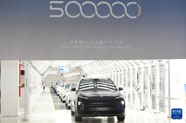 5月9日,在安徽省合肥市新橋智能電動汽車產業(yè)園蔚來第二工廠,蔚來第50萬臺量產車下線。新華社記者張端攝