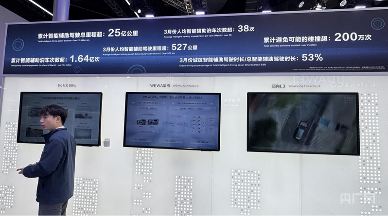 華為乾崑展臺上的宣傳術語。(央廣網(wǎng)記者董楠 攝)