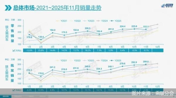 車市正進(jìn)入平穩(wěn)發(fā)展階段。12月8日,中國汽車流通協(xié)會(huì)乘用車市場(chǎng)信息聯(lián)席分會(huì)(以下簡(jiǎn)稱“乘聯(lián)分會(huì)”)發(fā)布的數(shù)據(jù)顯示,2025年前11個(gè)月零售2148.3萬輛,整體保持增長。不過,今年11月車市零售量同比、環(huán)比均出現(xiàn)下滑?!?1月乘用車市場(chǎng)銷量環(huán)比出現(xiàn)下降,是比較少見的?!背寺?lián)分會(huì)秘書長崔東樹認(rèn)為,今年上半年,我國乘用車市場(chǎng)銷量實(shí)現(xiàn)較快增長,下半年車市增長需回到合理、穩(wěn)定的狀態(tài)。車市進(jìn)入平穩(wěn)期有利于市場(chǎng)長期穩(wěn)定發(fā)展,預(yù)計(jì)今年零售將增長5%。