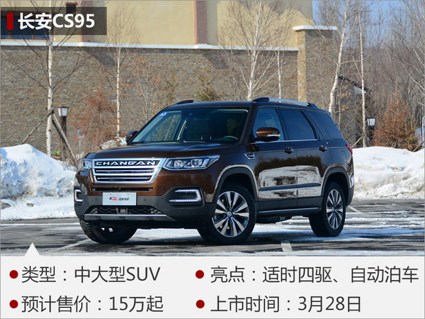 長安CS95是一款中大型SUV,于去年廣州車展正式發(fā)布,并將在今年3月28日上市。CS95的長寬高為4949*1930*1785mm,軸距2810mm。新車搭載全景天窗、車頂行李架以及LED大燈組等。在內(nèi)部配置方面,長安CS95配備了方向盤加熱、定速巡航等實(shí)用性配置。此外,新車還配備了ABS防抱死、車身穩(wěn)定控制系統(tǒng)等安全性配置。CS95搭載長安汽車自主研發(fā)的藍(lán)鯨2.0TGDI發(fā)動機(jī),最大功率171kW,峰值扭矩360Nm。