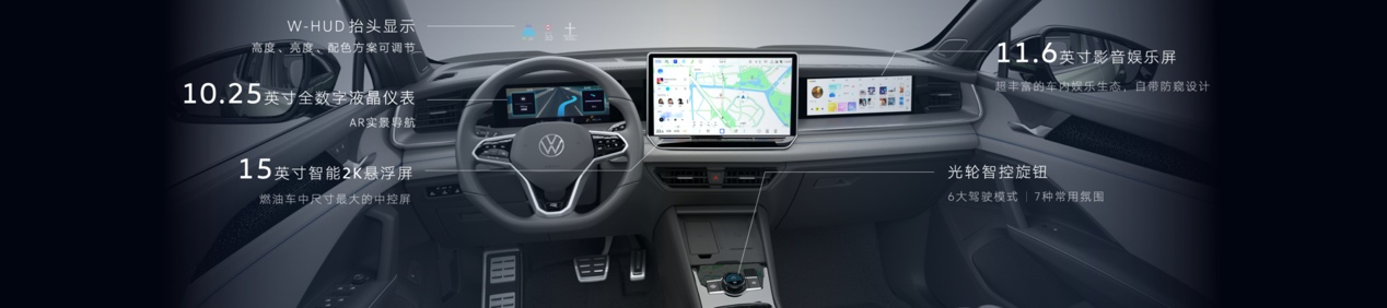 基于“好用”和“想用”的理念,全新探岳L 智能座艙以5+X多屏多模交互系統(tǒng)為核心。其中,“5”即5塊屏幕,包含了15英寸2K中控屏、11.6英寸副駕影音娛樂屏,搭配豐富的車內娛樂生態(tài),靈動又默契;另外,10.25英寸全數(shù)字液晶儀表,能實現(xiàn)AR實景導航,導航信息與實景路面融合,讓駕駛更加專注;抬頭顯示HUD,安全好用;可觸摸光輪智控旋鈕,調節(jié)音量和切換駕駛模式,更加便捷。