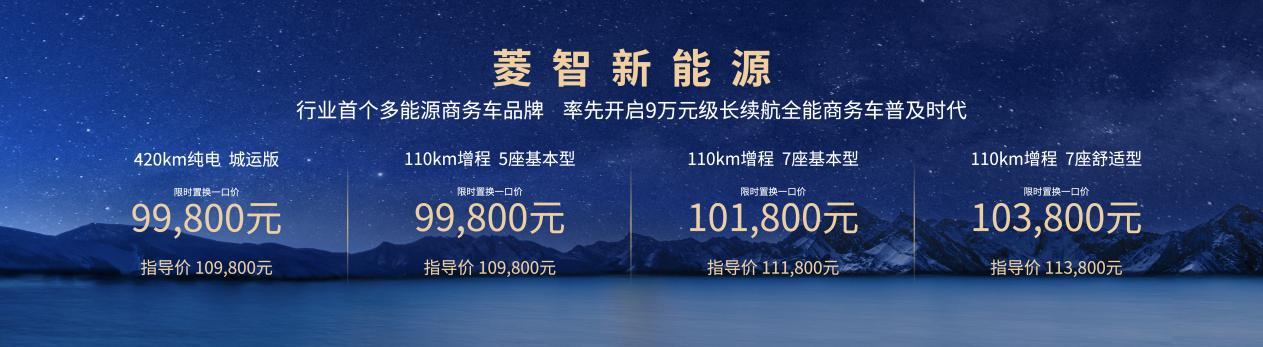 發(fā)布會上,菱智家族正式發(fā)布全新新能源產(chǎn)品矩陣,涵蓋純電、增程雙技術(shù)路線版本。其中,菱智新能源420km純電城運(yùn)版,售價為10.98萬元,限時置換一口價9.98萬元;菱智新能源110km增程版,售價為10.98-11.38萬元,限時置換一口價9.98-10.38萬元。2025年6月30日前訂車的首批客戶贈送價值1500元的10寸液晶大屏,以及對行駛里程超過10萬公里的車輛,贈送基礎(chǔ)保養(yǎng)1次,助力中小微創(chuàng)業(yè)者跑出“創(chuàng)富加速度”。