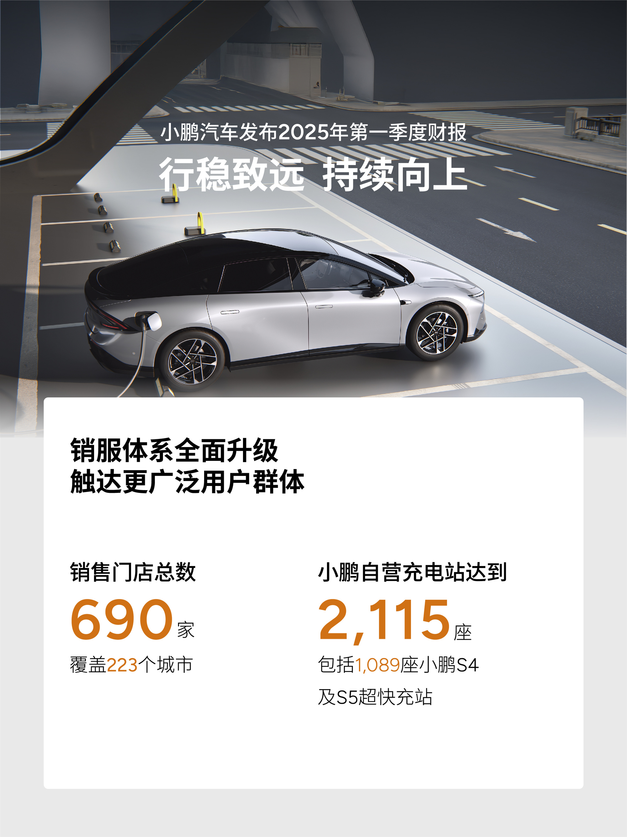 為了支持銷售,小鵬汽車正在加快銷售與充電網(wǎng)絡(luò)布局。截至3月31日,小鵬汽車擁有共計(jì)690家門店,覆蓋223座城市;自營充電站網(wǎng)絡(luò)進(jìn)一步擴(kuò)展至2115座充電站,包括1089座小鵬S4及S5超快充站。