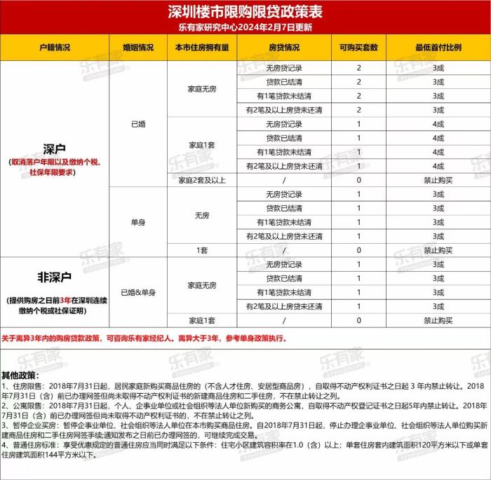 此次,深圳對(duì)戶籍居民家庭購房、非戶籍居民家庭及成年單身人士(含離異)的限購政策均有所調(diào)整。
