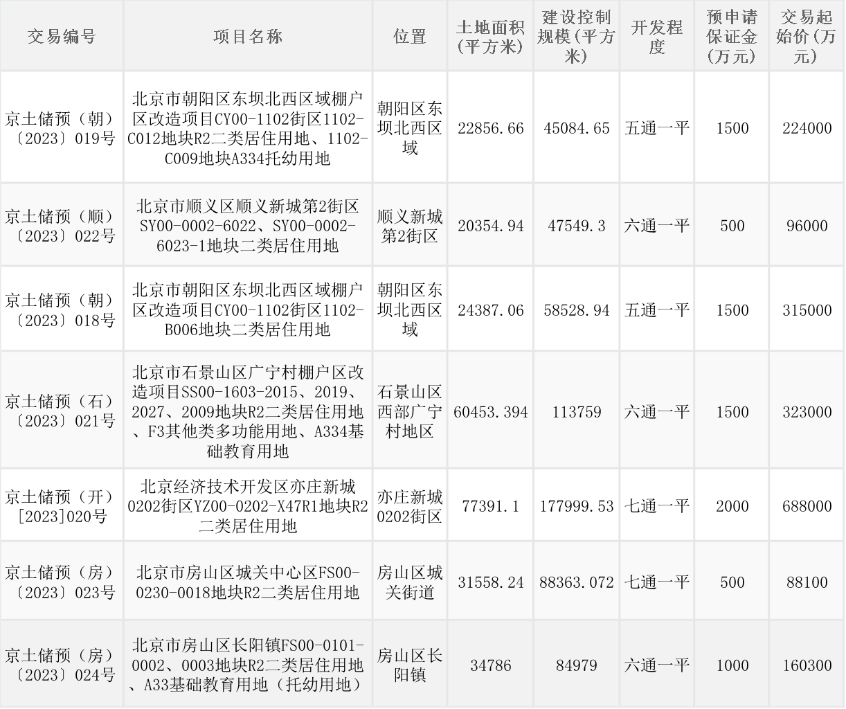 央廣網(wǎng)北京5月8日消息 5月6日晚間,北京市規(guī)劃和自然委員會(huì)掛牌7宗預(yù)申請(qǐng)住宅用地。其中,朝陽(yáng)區(qū)、房山區(qū)各兩宗,經(jīng)開區(qū)、順義區(qū)、石景山區(qū)各一宗,總土地面積約27.18萬(wàn)平方米,總建設(shè)控制規(guī)模約61.63萬(wàn)平方米,總起始價(jià)189.44億元。