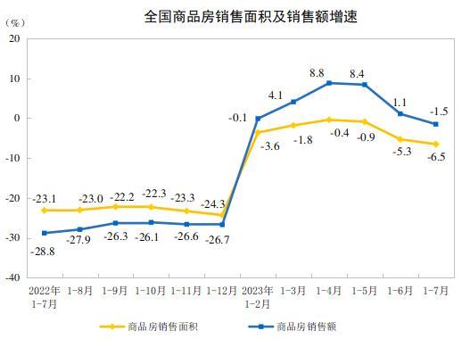 中新網(wǎng)8月15日電 國家統(tǒng)計局網(wǎng)站15日公布2023年1—7月份全國房地產(chǎn)市場基本情況。1—7月份,全國房地產(chǎn)開發(fā)投資67717億元,同比下降8.5%;商品房銷售額70450億元,下降1.5%。