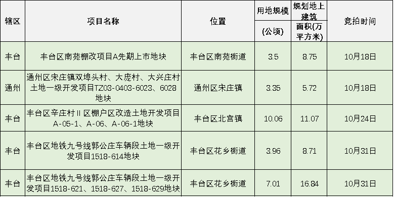 根據(jù)北京市規(guī)自委網(wǎng)站顯示,10月份北京還將有5宗宅地入市,其中豐臺(tái)4宗、通州1宗。(門(mén)庭婷)