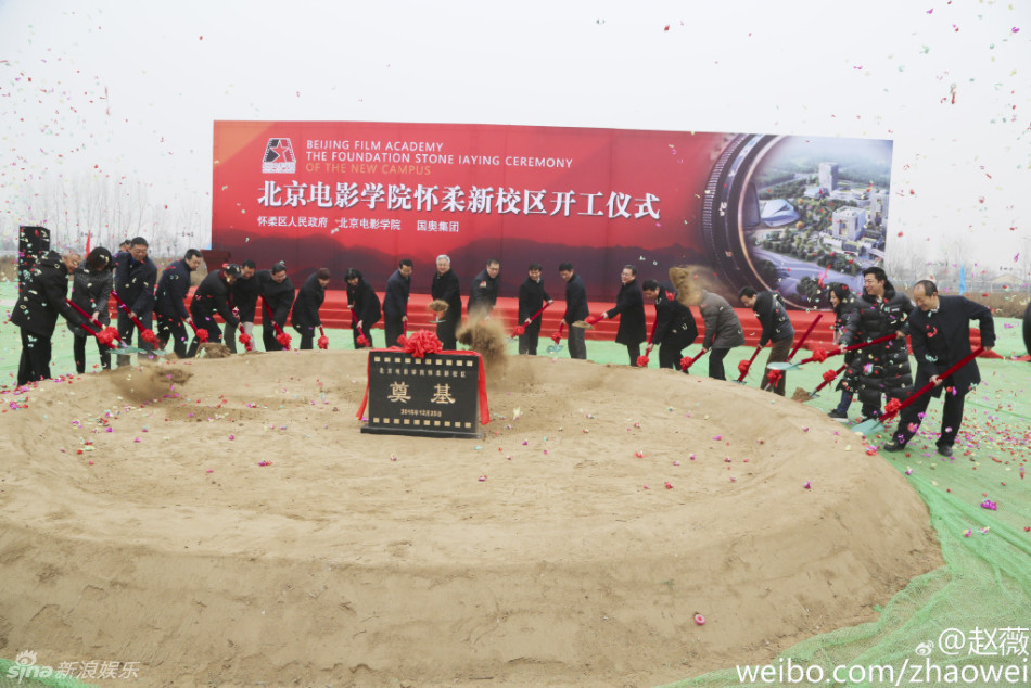 12月25日,北京電影學院懷柔新校區(qū)開工儀式舉行。趙薇、黃渤作為資深校友現(xiàn)身奠基儀式,穿羽絨服鏟土。趙薇贊“地杰人靈之地!”