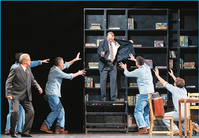 這對(duì)柯雅各是個(gè)難題。雖然他從小喜愛表演,但他平時(shí)主要從事企業(yè)管理,此次是他首度出演大型話劇。他由衷感謝張國(guó)立,因?yàn)閺垏?guó)立每天必到排練場(chǎng),從一個(gè)眼神到一場(chǎng)對(duì)手戲,仔細(xì)指導(dǎo)他,經(jīng)常親自示范?!澳苷崭麑W(xué)習(xí),如同在上一堂大師課。”柯雅各說,“演話劇后我才理解,這部劇最大的亮點(diǎn)不是安迪越獄成功、解救了自己,而是他用自己身上的希望之光照亮他人。導(dǎo)演也是在身體力行地照亮我們?!?/p>