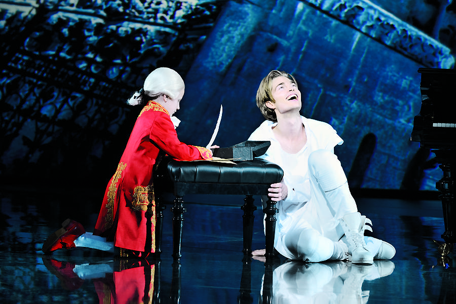 坊間近年來(lái)出了很多寫名人的戲,不少當(dāng)代英雄和歷史人物你方唱罷我登場(chǎng)。大家感慨真人難寫,常會(huì)顧此失彼,不容易讓熟悉其原型的各方面人士都滿意——至少認(rèn)可其真實(shí)性。在這個(gè)語(yǔ)境中看《莫扎特!》,編劇兼作詞米歇爾·昆策筆下的辯證主題及其呈現(xiàn)方式的巧思實(shí)在令人嘆為觀止。我們看到了多少個(gè)莫扎特?除了瓷娃娃阿瑪?shù)?、少年和成年莫扎特,還有老莫扎特鏡像中的不孝子、總主教鏡像中的刺頭員工、男爵夫人眼里恨鐵不成鋼的年輕人、妻子眼里的愛人、岳母囊中的獵物、賭友最愛的冤大頭……所有這一切,都被昆策張弛有致地編織到懸念迭起還有那么多歌的劇情中。