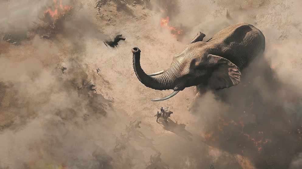 百米青銅巨門(mén)徐徐開(kāi)啟,祭祀臺(tái)上女子隨樂(lè)獨(dú)舞,突然黃沙漫天,戰(zhàn)象狂奔而來(lái),未等塵埃落定,視線閃回“博物館”,金戈鐵馬化作一尊尊精美文物浮現(xiàn)眼前……