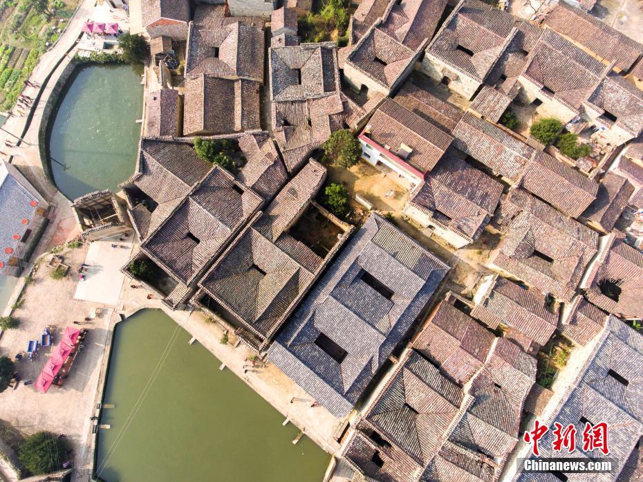 12月10日,航拍位于江西金溪縣有著600多年歷史的中國歷史文化名村、中國傳統(tǒng)村落竹橋古村,俯瞰全村,形似一柄巨扇。該村現(xiàn)保存有明代所建民居8幢,明代祠堂1幢,其余為清代建筑,青磚灰瓦,樸實素雅,為贛派建筑最典型的代表。村前溪水長流,良田萬頃,村后茂林修竹,鳥鳴樹幽,身歷其境,如入畫中。傅建斌 攝