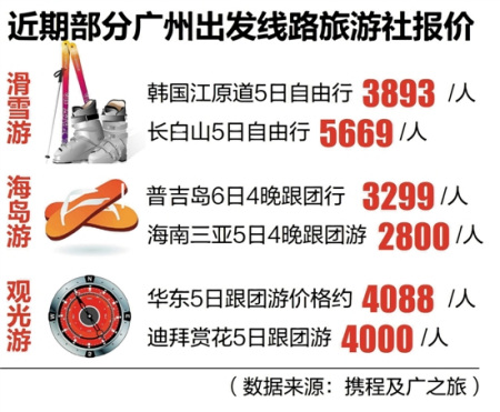 數(shù)據(jù)顯示,越來(lái)越多的出境游線路和國(guó)內(nèi)游價(jià)格相差無(wú)幾,不少線路更是“平到笑”。比如,羊城晚報(bào)記者根據(jù)攜程及廣之旅報(bào)價(jià)發(fā)現(xiàn),近期一些廣州出發(fā)到韓國(guó)滑雪自由行5日價(jià)格為3893元,而到長(zhǎng)白山滑雪5日行的價(jià)格為5669元;廣州到三亞與到泰國(guó)普吉島海島游自由行價(jià)格均為3000元左右;廣州到迪拜5日賞花游跟團(tuán)游4000元,廣州到華東5日跟團(tuán)游4088元;廣州到越南、柬埔寨出境線路跟團(tuán)游普遍只需兩三千元,低過(guò)不少?lài)?guó)內(nèi)游線路。