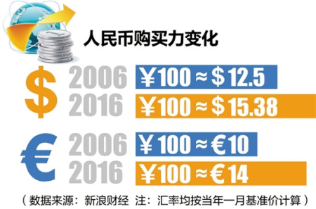 出境游人數(shù)11年增長(zhǎng)2.5倍,與中國(guó)人均GDP增速不謀而合。而人民幣匯率從2006年100元人民幣約兌換10歐元,上升至2016年約兌換14歐元,上升近50%。人民幣兌美元也從2006年的100元人民幣約兌換12.5美元,上升至2016年約兌換15.38美元,上升近25%。人民幣更值錢(qián)、錢(qián)袋子更鼓讓國(guó)人出境游更有底氣。