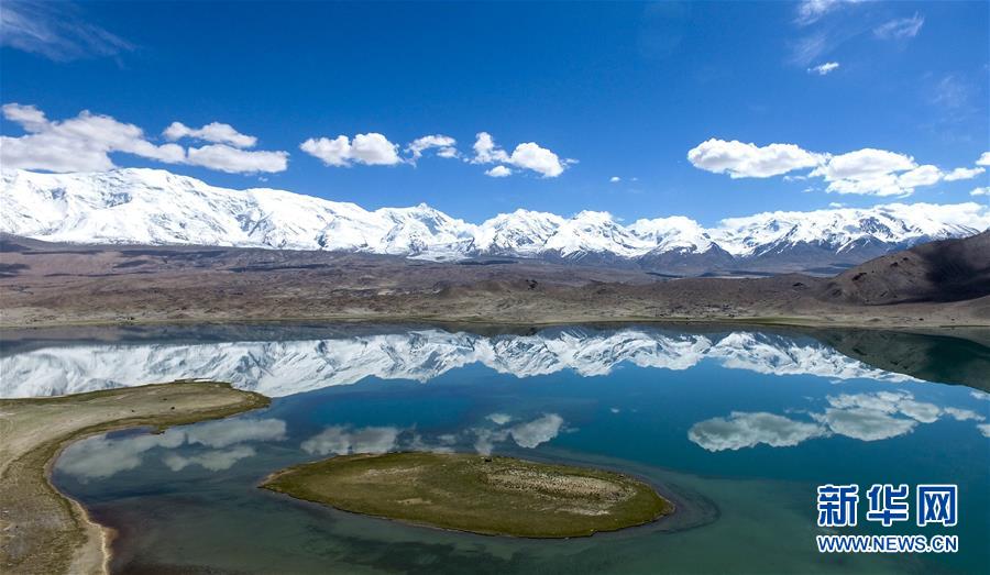 公格爾九別峰倒映在卡拉庫(kù)里湖里(6月7日攝)。6月的帕米爾高原風(fēng)光旖旎,吸引國(guó)內(nèi)外大量游客前來(lái)領(lǐng)略它的神韻。 新華社記者趙戈 攝