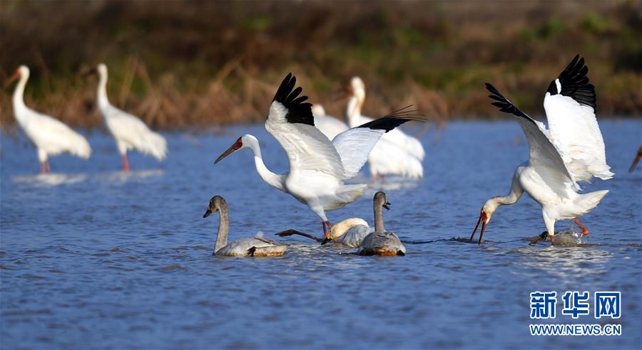受新一輪北方冷空氣南下影響,江西鄱陽湖越冬候鳥數(shù)量激增,一年中最佳的觀鳥時節(jié)到來。江西鄱陽湖國家級自然保護區(qū)管理局近日監(jiān)測顯示,飛抵保護區(qū)的候鳥總數(shù)達到16萬只,主要包括大雁、小天鵝、白鶴、東方白鸛等。