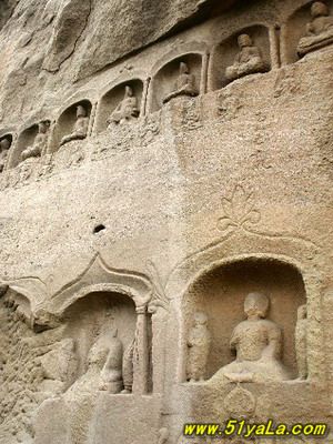 天龍山石窟在山西太原市西南40公里天龍山腰。天龍山亦名方山,海拔高1700米。這里風(fēng)光秀麗,歷史上曾是北齊皇帝高洋之父高歡的避暑宮。四周山巒起伏,遍山松柏蔥郁,山頭龍王石洞泉水蕩漾,山前溪澗清流潺潺。天龍山石窟創(chuàng)建于東魏(公元534—550年),高歡在天龍山開(kāi)鑿石窟,高歡之子高洋建立北齊的晉陽(yáng)為別都,繼續(xù)在天龍山開(kāi)鑿石窟。隋代楊廣為晉王,繼續(xù)開(kāi)鑿石窟,唐代李淵父子起家于晉陽(yáng),建造石窟達(dá)到高峰。