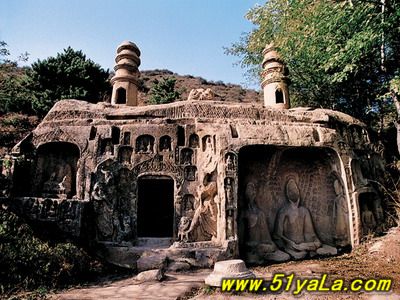 羊頭山梵剎,名曰清化寺,據(jù)記載始建于北魏孝文帝太和年間(四七七——四九九年),原名定國寺,北齊時改名宏福寺,隋末寺廢,唐武則天天授二年(六九一年)重建,并改額清化。今清化寺建筑已不存,尚留石佛三尊、明碑一通和殿堂遺址,但寺周北魏至隋唐時期窟龕造像和石塔仍依然如故。