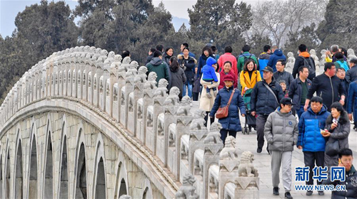 3月11日,大批游人在頤和園十七孔橋游玩。 新華社記者 李欣 攝