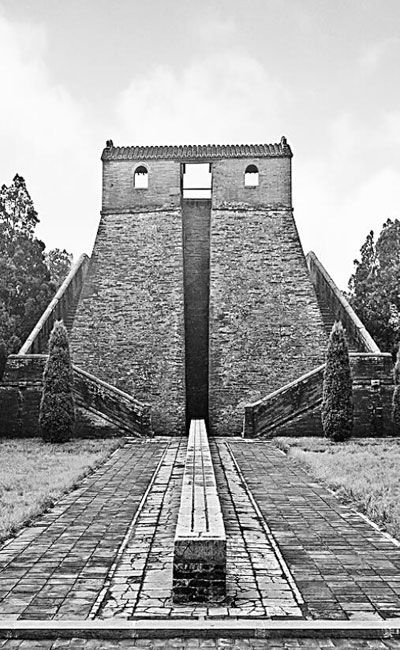 周公廟山門為明代建筑風(fēng)格,兩側(cè)的石柱上刻著一副對聯(lián):“石表寓精心氤氳南北變寒暑,星臺留古制會合陰陽交雨風(fēng)?!边@是對廟內(nèi)的周公測影臺和觀星臺作用和價值的高度概括。山門對面有一座照壁,中嵌一石刻“千古中傳”,是對兩臺的形象歌頌。