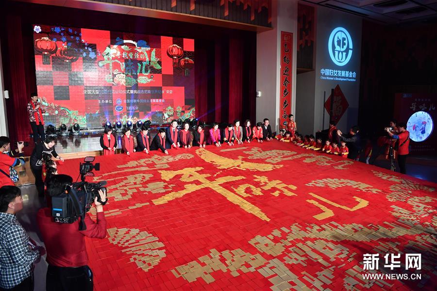 1月11日,“尋找曾經(jīng)的年味兒”全國大型公益行動在北京中國婦女兒童博物館啟動,通過發(fā)放年味兒畫冊、舉辦年味兒趣味活動,弘揚(yáng)傳統(tǒng)文化,同時為貧困家庭、醫(yī)護(hù)工作者送去問候與關(guān)愛。活動中,由近6萬個紅包拼鋪而成的64平方米“最大紅包拼圖”載入吉尼斯世界紀(jì)錄。春節(jié)期間,北京、濟(jì)南、石家莊、鄭州、哈爾濱等五座城市都將開展尋找年味兒的相關(guān)活動。新華社記者 李鑫 攝