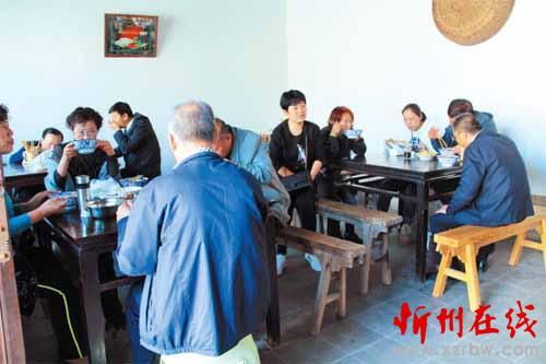 今年中秋節(jié)期間,筆者在這家小店招待了一位河北保定籍的馬姓文友。客人聽說中午要用高粱面招待他時,臉上隱隱露出不悅之色。當(dāng)熱騰騰的出籠紅面魚魚端上桌時,他也學(xué)著澆上臊子慢慢品嘗。只見他邊吃邊不住地點頭,臉上也多云轉(zhuǎn)晴了。當(dāng)一碗紅面魚魚下肚后,他雙手豎起大拇指,夸贊這頓別有風(fēng)味的粗糧美餐。友人說,在他們那里有一句歇后語:日本人吃高粱面——沒有法子。在他的印象中,“高粱黑豆乃驢馬之料”,人不到最困難的時候是不會吃的。想不到忻州人竟能把這種粗糧做得如此美味!