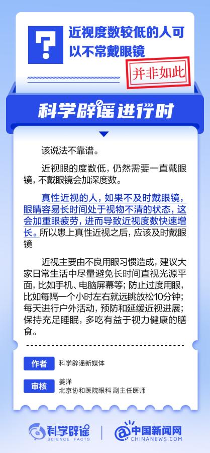 中新網(wǎng)6月6日電 6月6日是全國(guó)愛(ài)眼日。隨著大家越來(lái)越重視護(hù)眼,人們開(kāi)始自發(fā)地從網(wǎng)上查找一些護(hù)眼知識(shí),與此同時(shí),網(wǎng)上也出現(xiàn)了很多的護(hù)眼誤區(qū)。有哪些常見(jiàn)的所謂“護(hù)眼知識(shí)”其實(shí)是誤區(qū)?眼鏡度數(shù)配高點(diǎn)好還是配低點(diǎn)好?詳情↓ (來(lái)源:@科學(xué)辟謠 中國(guó)新聞網(wǎng)微博)