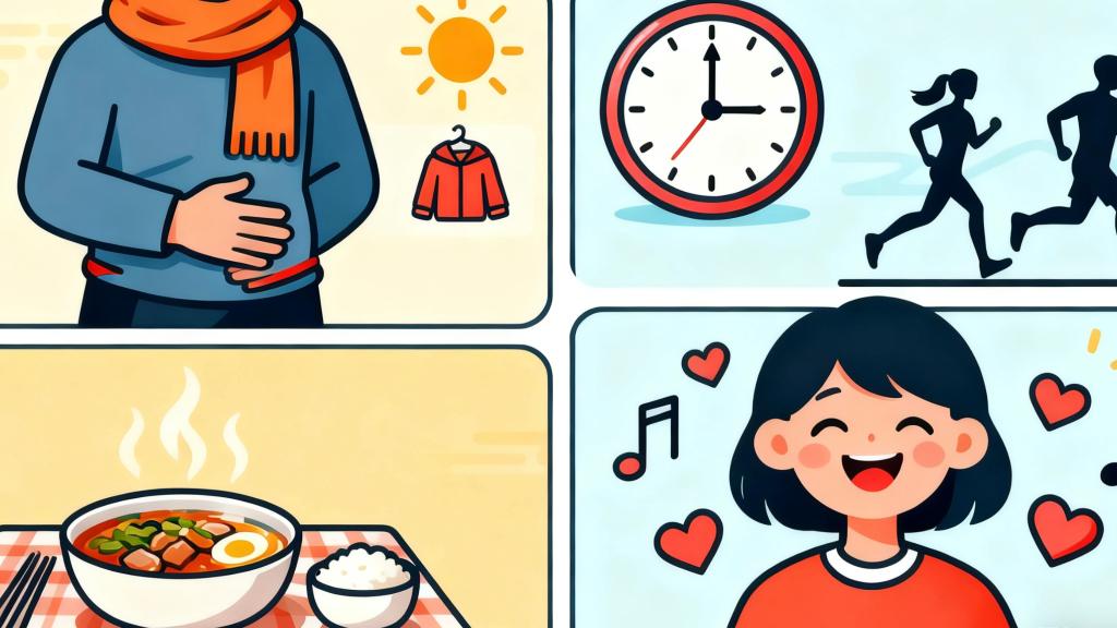 腹部保暖、三餐定時、規(guī)律作息、情緒管理是護(hù)胃“四大法寶”。AI繪圖??秋冬季如何打好“胃腸保護(hù)戰(zhàn)”?專家認(rèn)為,首先是做好腹部保暖,及時增添衣物,尤其要避免腹部暴露在冷空氣中,不要長時間處于寒冷環(huán)境。其次,飲食要以溫?zé)嵋紫癁橹鳎M量不吃生冷食物,三餐定時定量,減少腸道負(fù)擔(dān)。第三,規(guī)律作息,避免熬夜,結(jié)合適當(dāng)體育鍛煉促進(jìn)血液循環(huán),增強(qiáng)胃腸蠕動,提高身體的耐寒能力和免疫力,以此增強(qiáng)胃腸抵抗力。最后,焦慮和抑郁是胃腸疾病的“催化劑”,要學(xué)會釋放壓力,保持心情愉悅,不讓壞情緒“傷”胃。