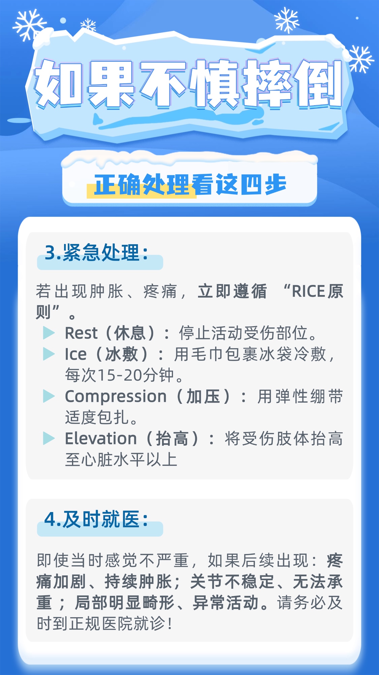 近日寒潮來襲,雨雪低溫導(dǎo)致路面濕滑,極易引發(fā)摔跤。每年冬雪季,因路滑摔倒導(dǎo)致骨折、扭傷的患者都會(huì)明顯增多。人民網(wǎng)《健康“醫(yī)”點(diǎn)通》欄目采訪了河南省職工醫(yī)院中醫(yī)科·中西醫(yī)結(jié)合科主任醫(yī)師張恒,總結(jié)了一份“雪天防摔秘籍”,助您安穩(wěn)過冬!