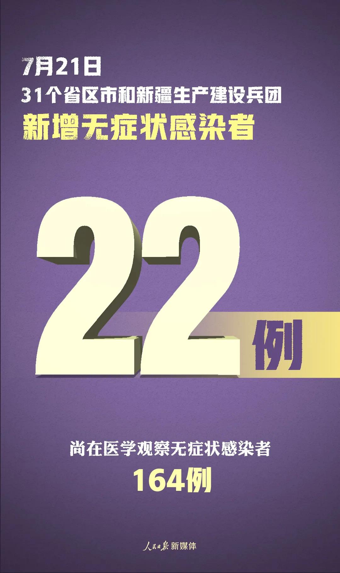 31個?。ㄗ灾螀^(qū)、直轄市)和新疆生產(chǎn)建設兵團報告新增無癥狀感染者22例(境外輸入8例);當日無轉(zhuǎn)為確診病例;當日解除醫(yī)學觀察7例(境外輸入4例);尚在醫(yī)學觀察無癥狀感染者164例(境外輸入84例)。
