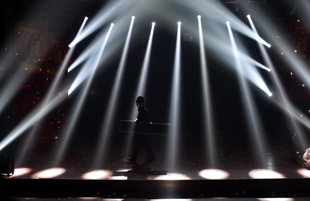 ↑1月3日,在山西省渾源縣貧困山區(qū)合唱團(tuán),一名工作人員在搬運設(shè)備為文藝下鄉(xiāng)匯演做準(zhǔn)備。