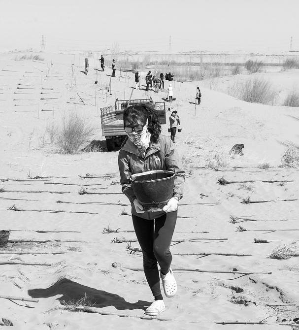 3月31日,一名青年志愿者正在取水澆灌。當(dāng)日,200余名中韓兩國(guó)青年志愿者來到內(nèi)蒙古自治區(qū)達(dá)拉特旗庫(kù)布其沙漠種樹。2006年起,中國(guó)國(guó)際青年交流中心與韓國(guó)韓中文化青少年協(xié)會(huì)組織兩國(guó)青年志愿者在庫(kù)布其沙漠植樹,參與防沙固沙項(xiàng)目。截至目前已植樹850多萬(wàn)株,造林3萬(wàn)多畝。新華社記者劉磊攝