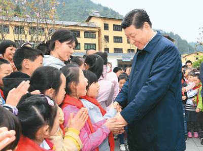 圖為四月十五日下午,習(xí)近平在重慶石柱土家族自治縣中益鄉(xiāng)小學(xué)同學(xué)生們親切交談,詢問他們學(xué)習(xí)和生活情況。新華社記者 謝環(huán)馳攝