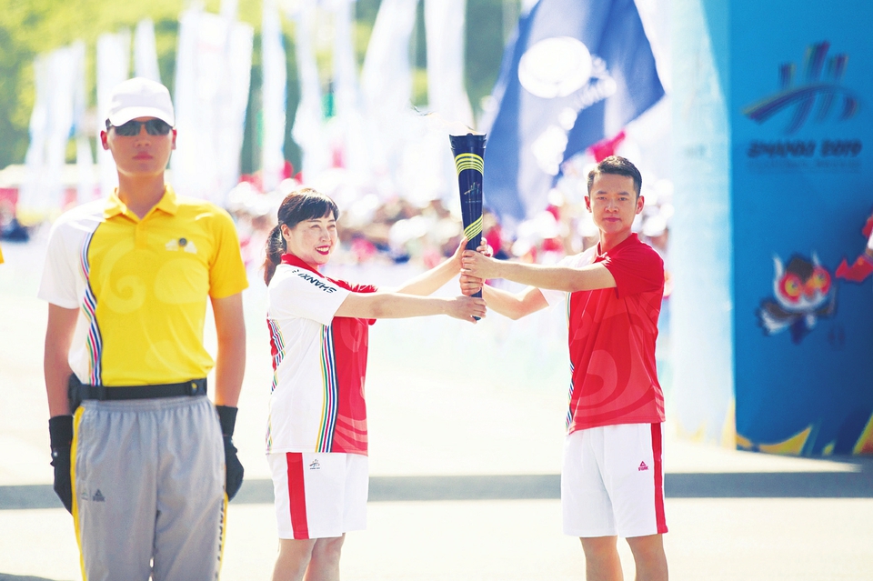 當(dāng)日一早,八一廣場(chǎng)上藍(lán)色會(huì)旗迎風(fēng)招展,鼓樂喧天,在《歌唱祖國》嘹亮的歌聲中,火炬?zhèn)鬟f起跑儀式拉開序幕。在由火種點(diǎn)燃的圣火盆前,長治市領(lǐng)導(dǎo)將點(diǎn)燃的火炬交給火炬?zhèn)鬟f的第一棒、長治籍太極拳世界冠軍崔碧暉,在火炬護(hù)衛(wèi)手的護(hù)衛(wèi)下,自東向西,精神抖擻地開啟了傳遞征程。當(dāng)天,潞州區(qū)的火炬?zhèn)鬟f共48棒,火炬手中有“匠心筑夢(mèng)”的大國工匠,也有支撐長治“好人城市”的全國道德模范,還有身殘志堅(jiān)勇奪世界冠軍的殘疾人運(yùn)動(dòng)員……不論年齡,無關(guān)崗位,他們身上都體現(xiàn)著屬于這個(gè)時(shí)代的拼搏與風(fēng)采。