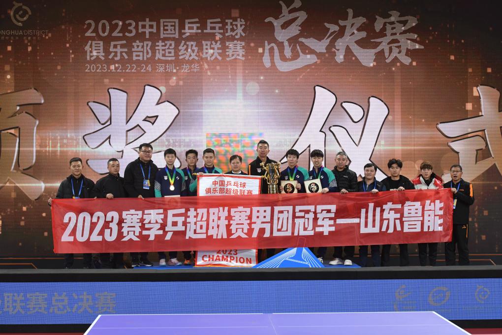 新華社深圳12月24日電(記者趙紫羽、王浩明、梁旭)2023賽季中國乒乓球俱樂部超級聯(lián)賽總決賽24日在深圳決出冠軍歸屬。馬龍坐鎮(zhèn)的山東魯能隊獲得男團(tuán)冠軍,陳夢、孫穎莎領(lǐng)銜的深圳大學(xué)隊獲得女團(tuán)冠軍。