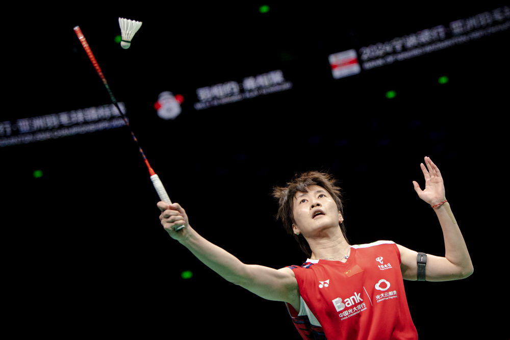 4月14日,陳雨菲在比賽中回球。新華社記者 江漢 攝