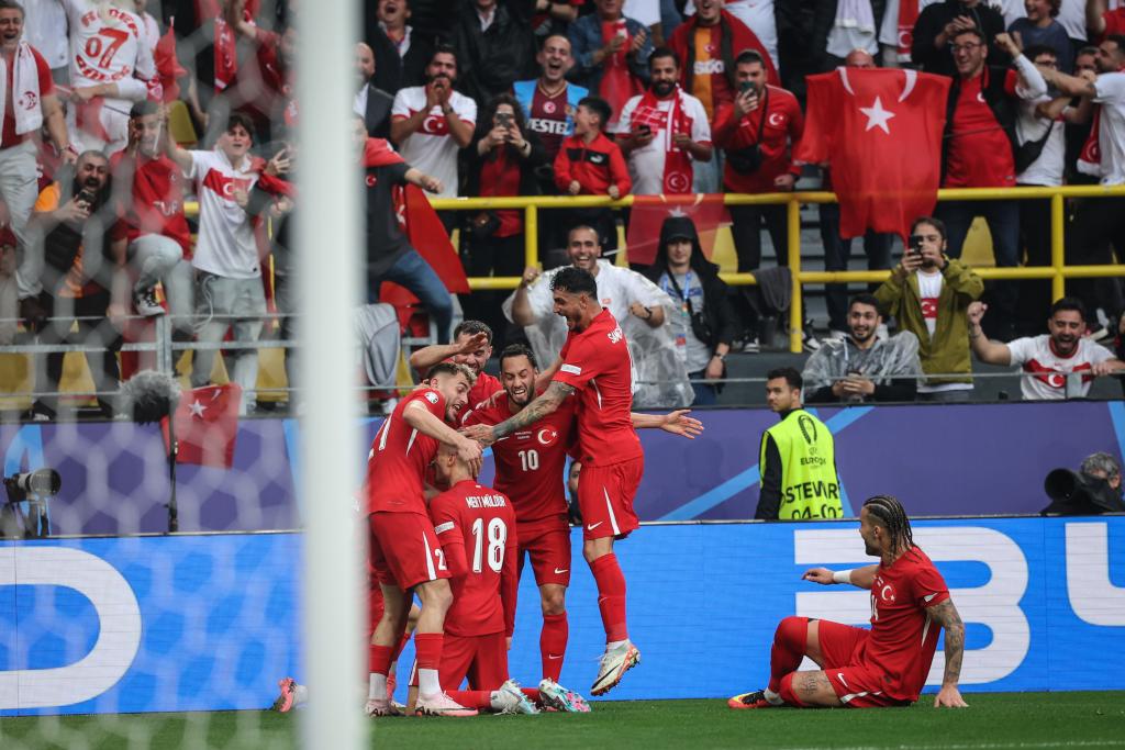 6月18日,土耳其隊球員梅爾特·穆爾杜爾(18號)進(jìn)球后與隊友慶祝。新華社記者 潘昱龍 攝 土耳其隊迎戰(zhàn)格魯吉亞隊的比賽中,第25分鐘,穆爾杜爾凌空遠(yuǎn)射,為土耳其隊首開記錄。第32分鐘,戈喬列什維利右路下底傳中,米考塔澤低射破門,格魯吉亞隊扳平比分。 易邊再戰(zhàn),第65分鐘,土耳其小將居萊爾禁區(qū)外一腳“神仙球”,幫助土耳其隊再度領(lǐng)先。19歲114天的居萊爾成為歐錦賽首秀破門的最年輕球員,打破了C羅2004年創(chuàng)造的紀(jì)錄(19歲128天)。補(bǔ)時第七分鐘,格魯吉亞門將到前場爭搶頭球,土耳其前鋒阿克蒂爾科奧盧反擊打空門得手,為土耳其隊3:1鎖定勝局。 F組中,首輪過后,土耳其隊和葡萄牙隊位居小組前兩位,格魯吉亞隊墊底。 (責(zé)任編輯:蔡文斌) |