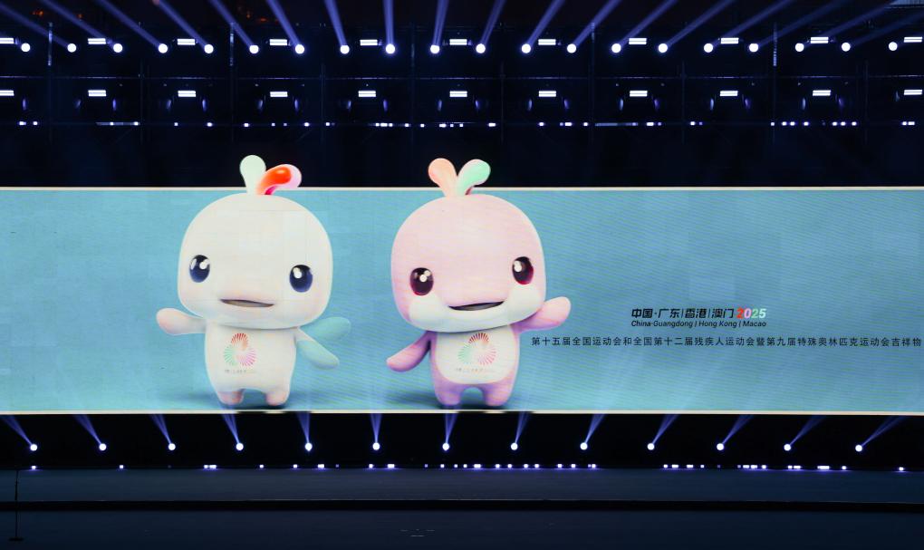 第二天晚上,在第十五屆全國運(yùn)動(dòng)會(huì)和全國第十二屆殘疾人運(yùn)動(dòng)會(huì)暨第九屆特殊奧林匹克運(yùn)動(dòng)會(huì)倒計(jì)時(shí)一周年啟動(dòng)儀式的大屏幕上,當(dāng)兩只海豚翩翩起舞,從海底游向海面,一躍而出化成兩個(gè)“萌寵”,“喜洋洋”與“樂融融”驚艷亮相,引來一片贊嘆。